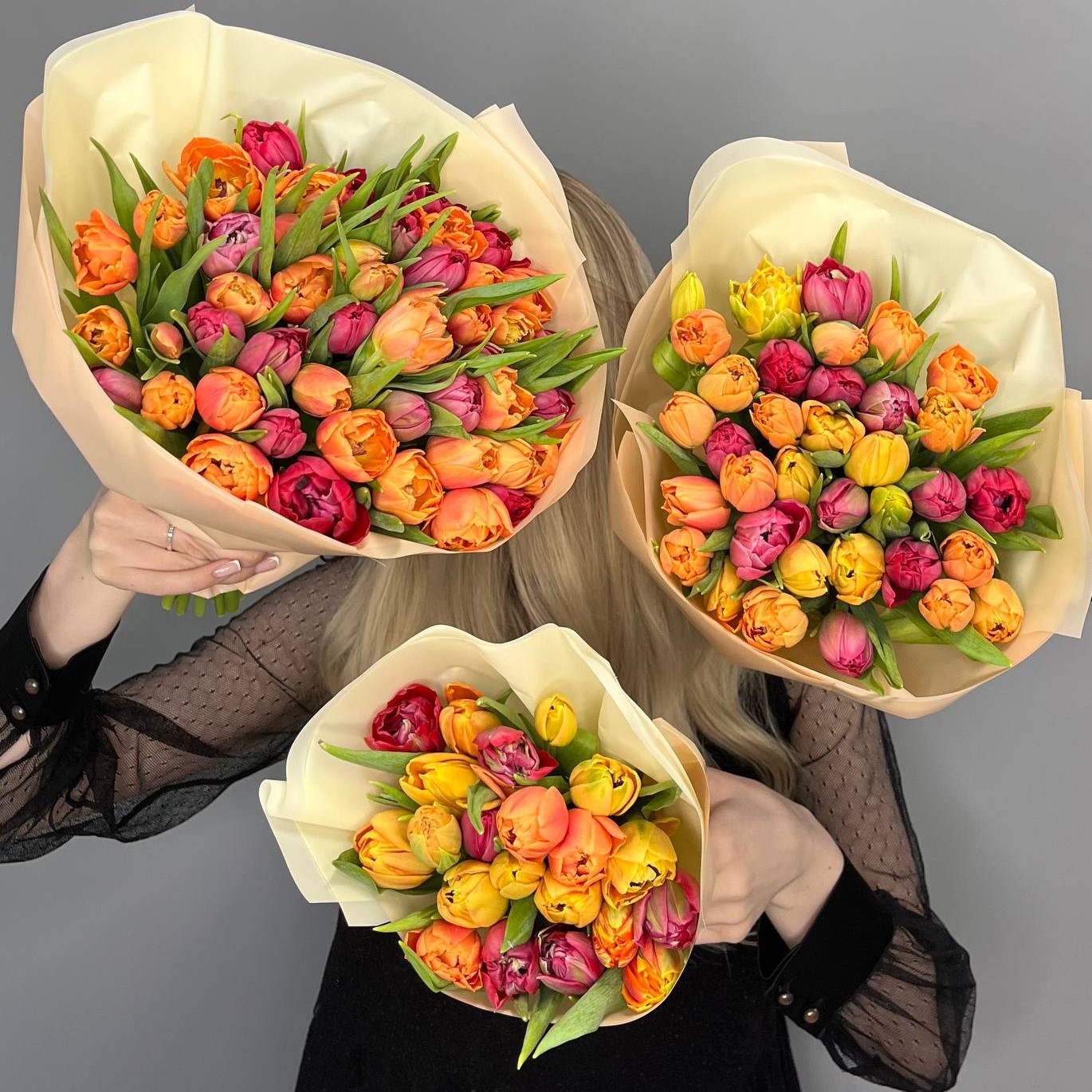 21 яркий пионовидный тюльпан