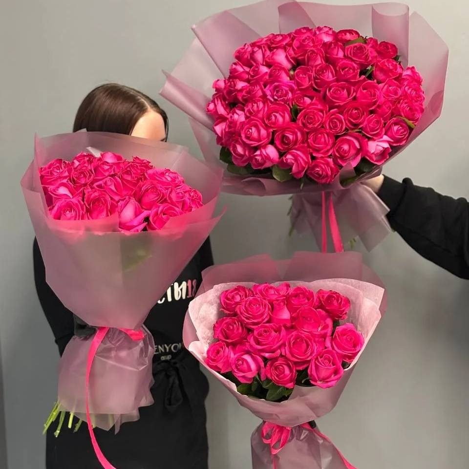 Букет "15 малиновых роз 50 см"