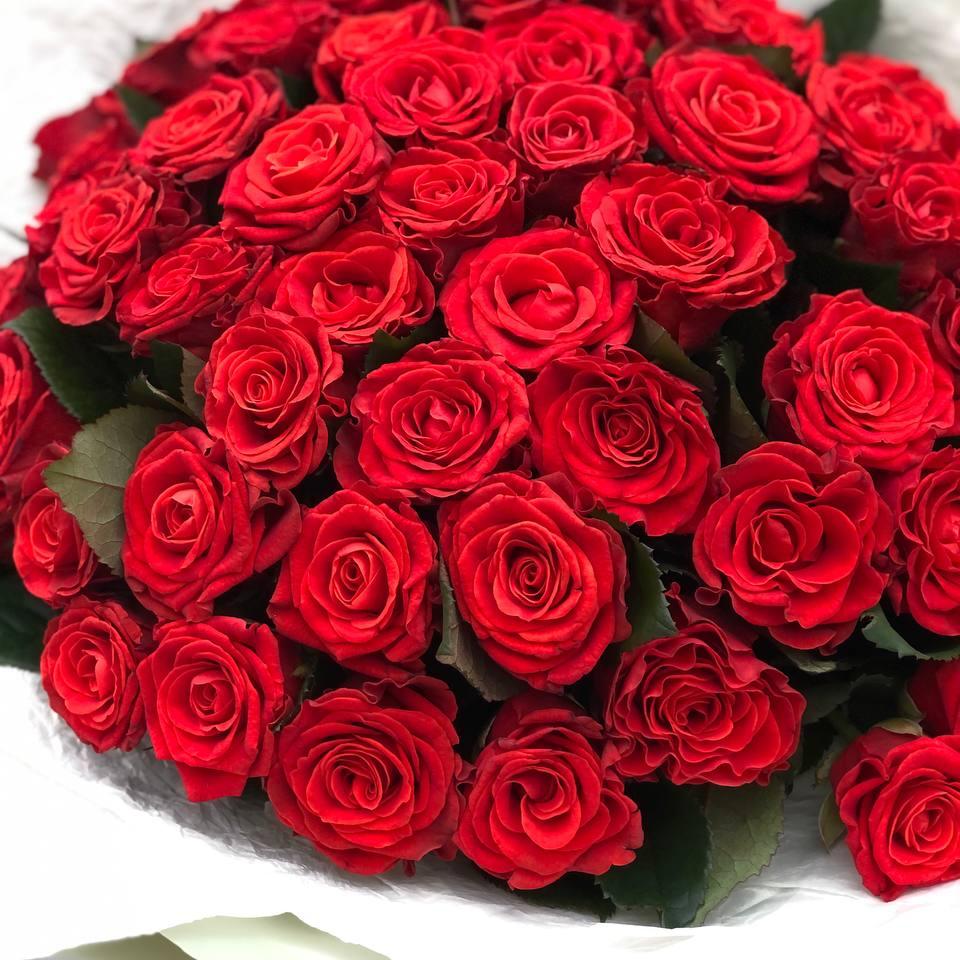 Букет из 51 алой кружевной розы 50/60 см