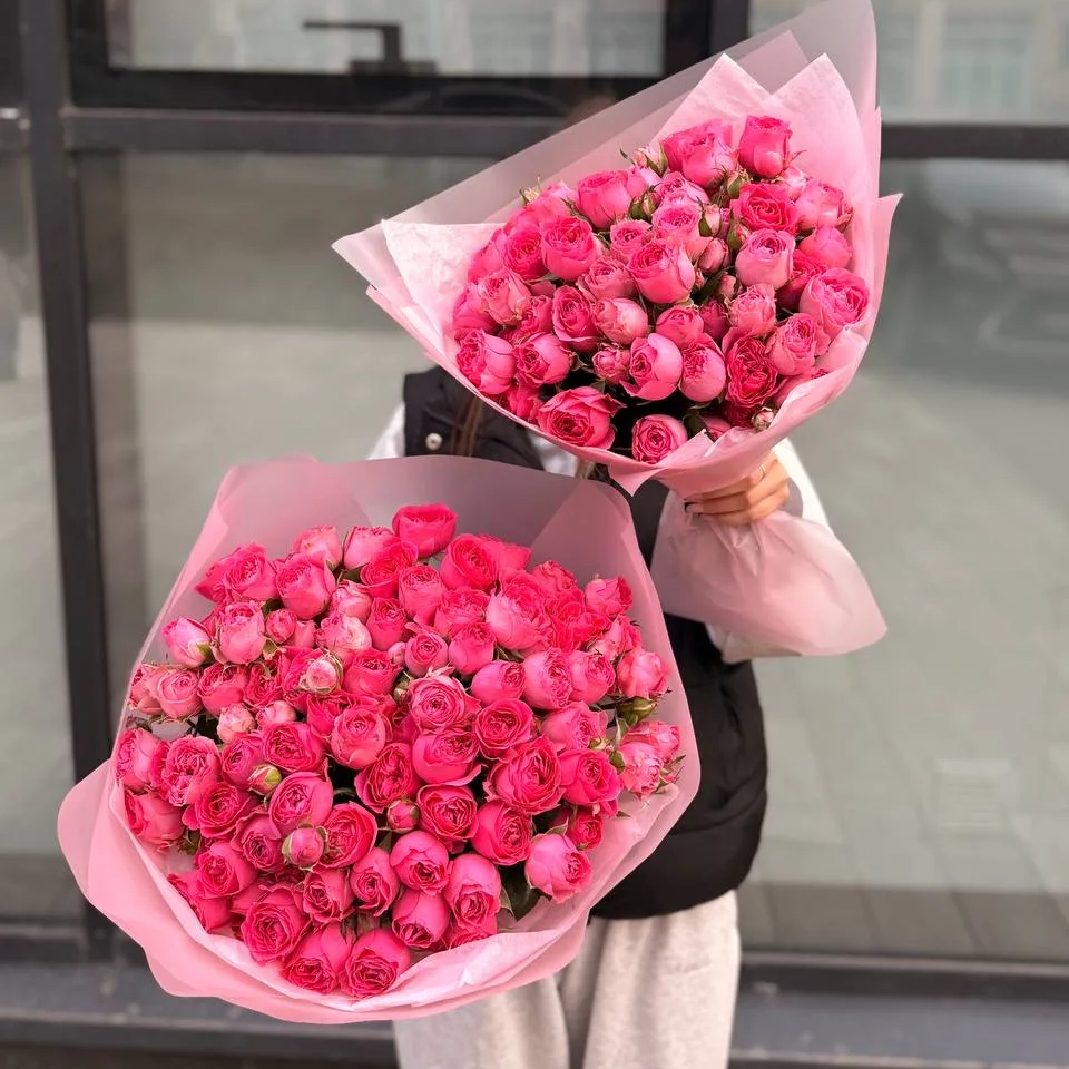 Букет "25 малиновых кустовых пионовидных роз 40 см"