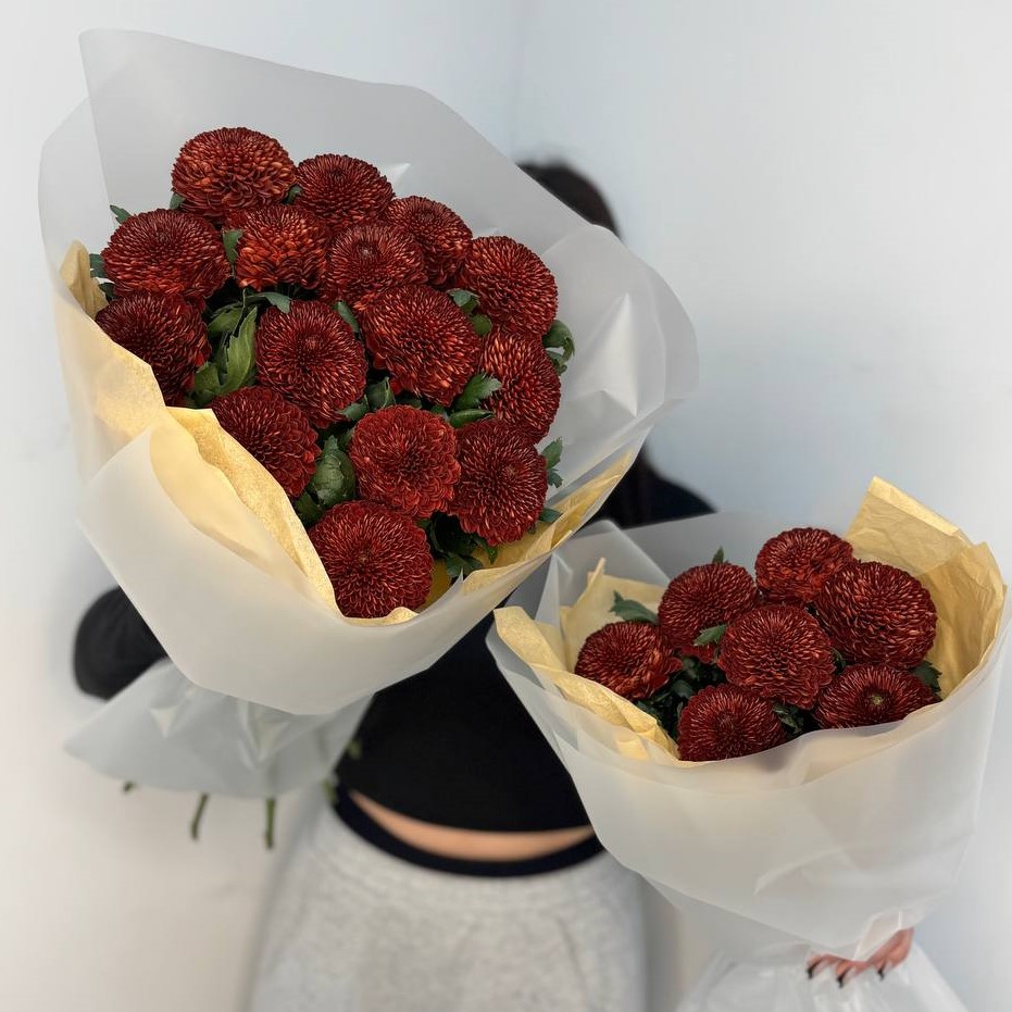 7 пушистых терракотовых одноголовых хризантем