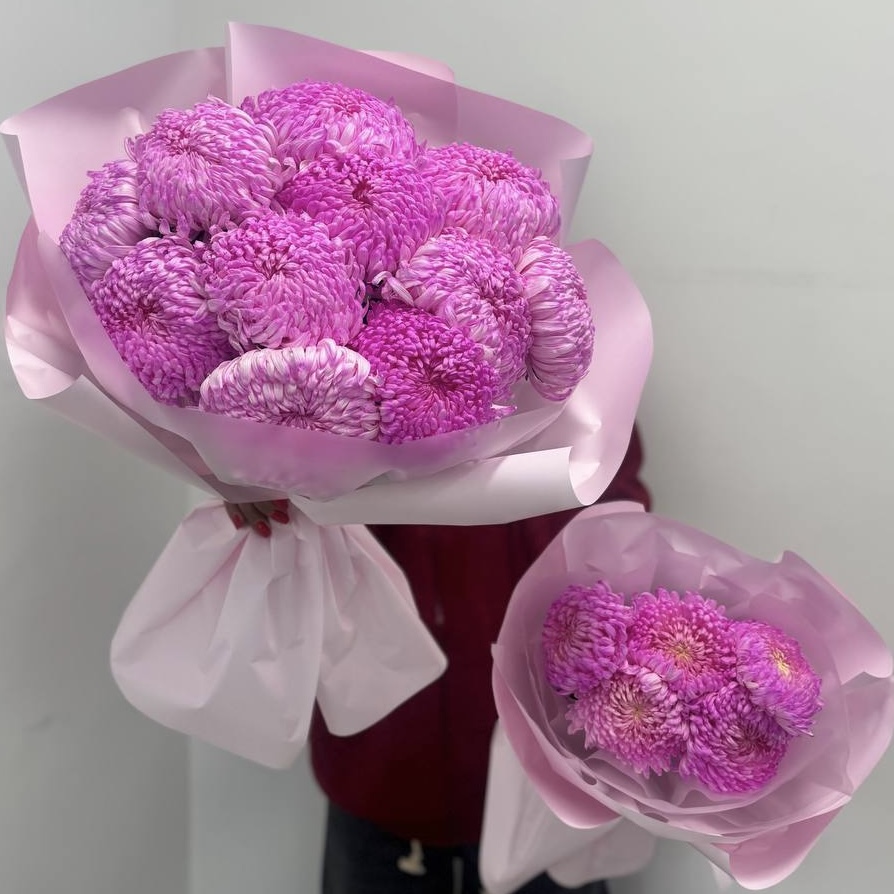 5 хризантем премиум цвета фуксия
