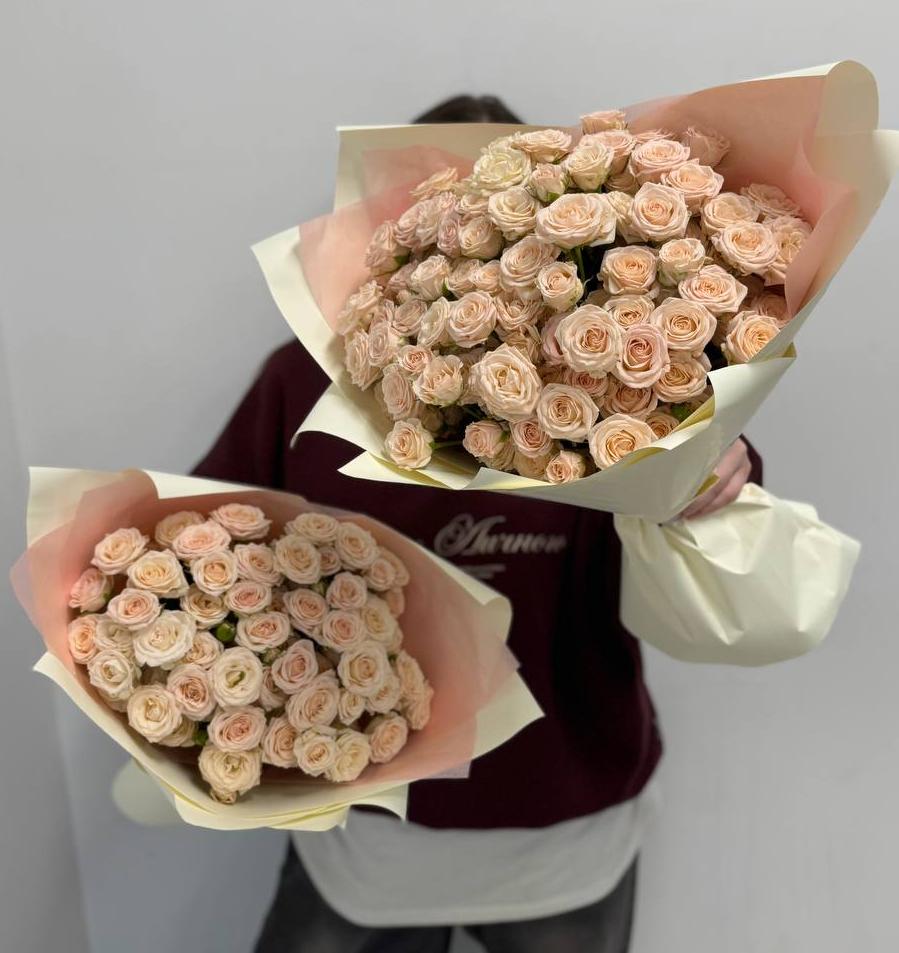 Букет из 15 кремовых кустовых роз