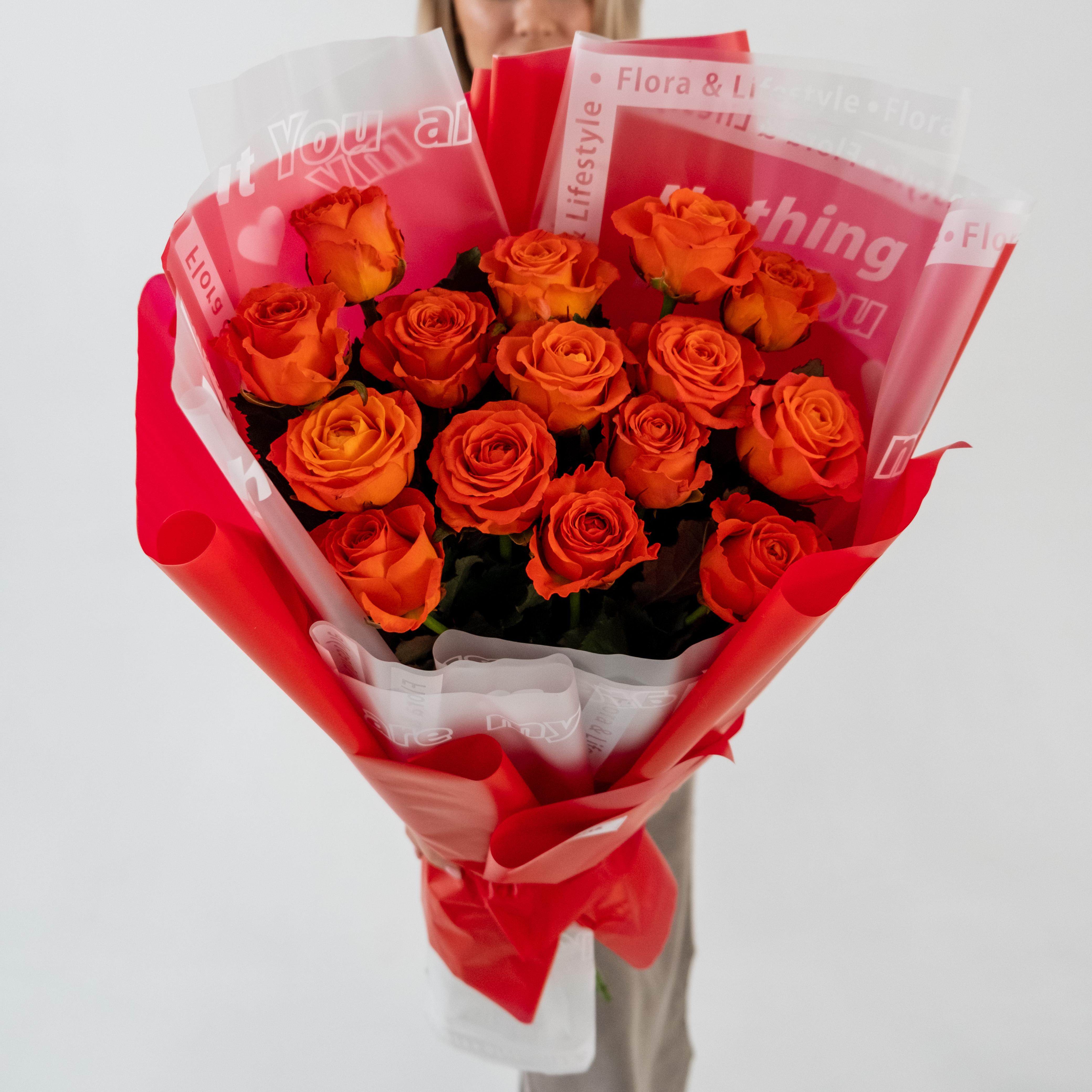 Букет из 15 оранжевых пионовидных роз 70/80 см