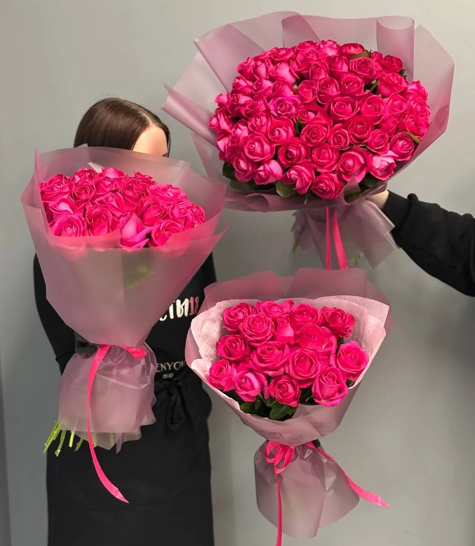 Букет "51 малиновая роза 50 см"